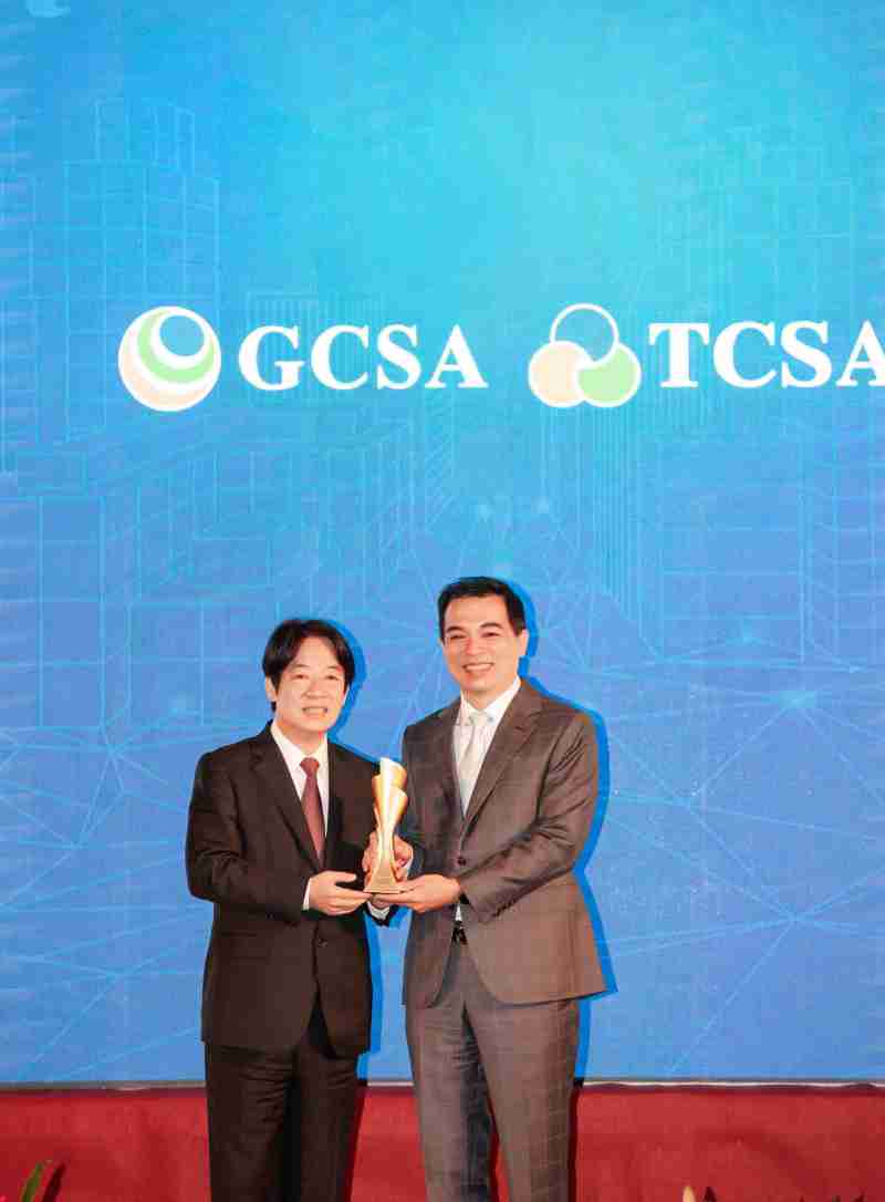 达全方位永续表现获全球永续奖及台湾永续奖肯定,,,,由副总统赖清德颁奖 (左),,,,z6尊龙总经理柯富仁 (右) 代表领奖