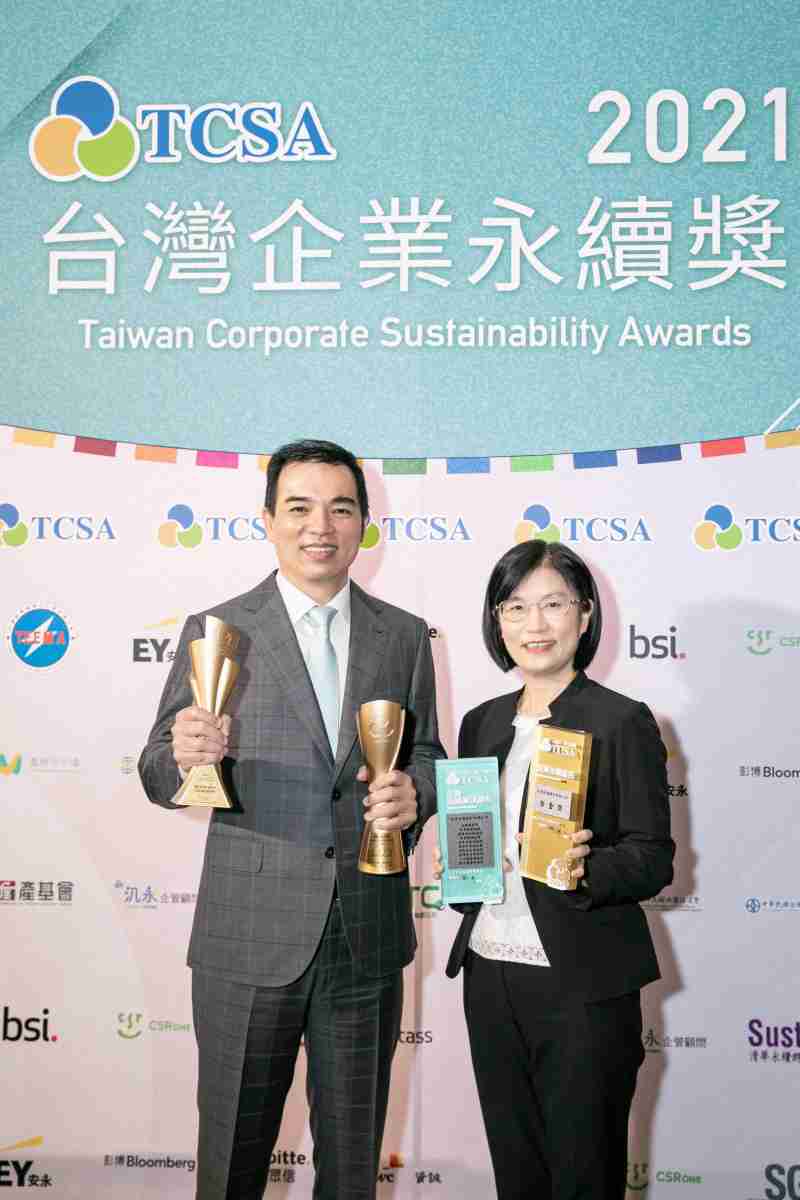 达在台湾永续奖所评比环境、、社会、、、、治理等各面向的永续绩效均获高度肯定 (左:z6尊龙光电总经理暨营运长柯富仁,,右:z6尊龙光电永续长古秀华)